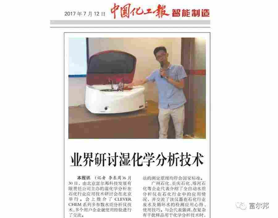 化工报记者听取了厂家对产品的介绍和其他的应用案例分享之后,对各位进行了专访,对本次会议湿化学前沿技术及多参数水质分析仪的应用在化工报“智能制造”版面进行了专题报道。