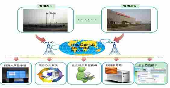 恶臭在线监测系统数据传输主要以: GPRS数据传输网络、数据接收服务器、客户机(服务器和客户端可为同一台电脑)等组成。