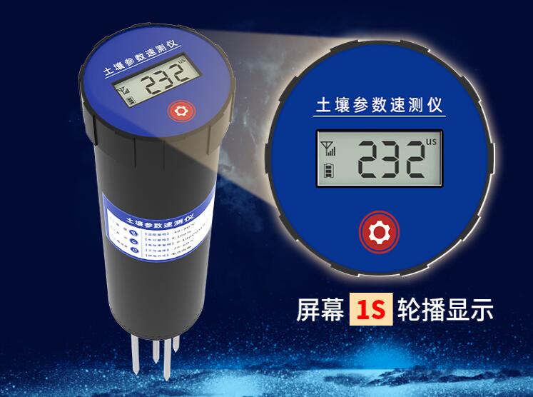 实时监测土壤成分(可检测土壤中多种有机成分),数据通过采用电池供电高清大屏液晶显示,界面参数功能显示明确,数值轮播显示,电池可更换;