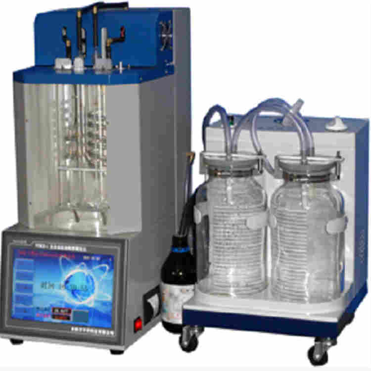 该仪器按照 GB/T 11143 方法要求,由微处理器进行实际温度数据采集,再根据实际温度数据控制加热器对恒温浴进行温度控制,蓝色LCD显示器显示状态、温度、时实时间,整个试验有操作提示。同时做四个试样,时间自动记时。