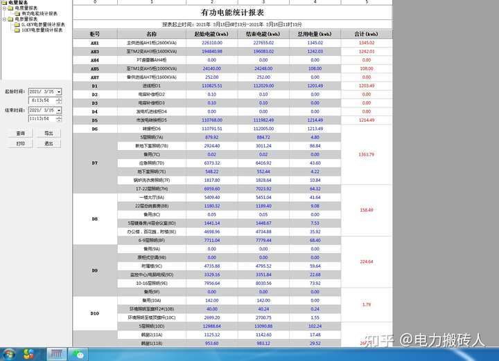 系统可以统计各分项某段时间内逐日、逐周、逐月、逐季、逐年用能。可查看分项中各支路用能趋势,可根据已有的日期或者自定义时间进行查询,统计数据可导出至Excel。