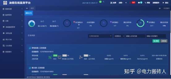 3、显示所有餐企的工况原始数据,包括正常排放(风机开/过滤器开)、异常排放(风机开/过滤器关)、停止排放(风机关),同时显示当前工况下的所有其他数据指标。