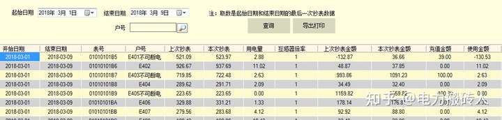 33. 能耗分析报表 通过选择日期段、查询的地理位置(按楼、层或户号)进行用电能耗的按天查询