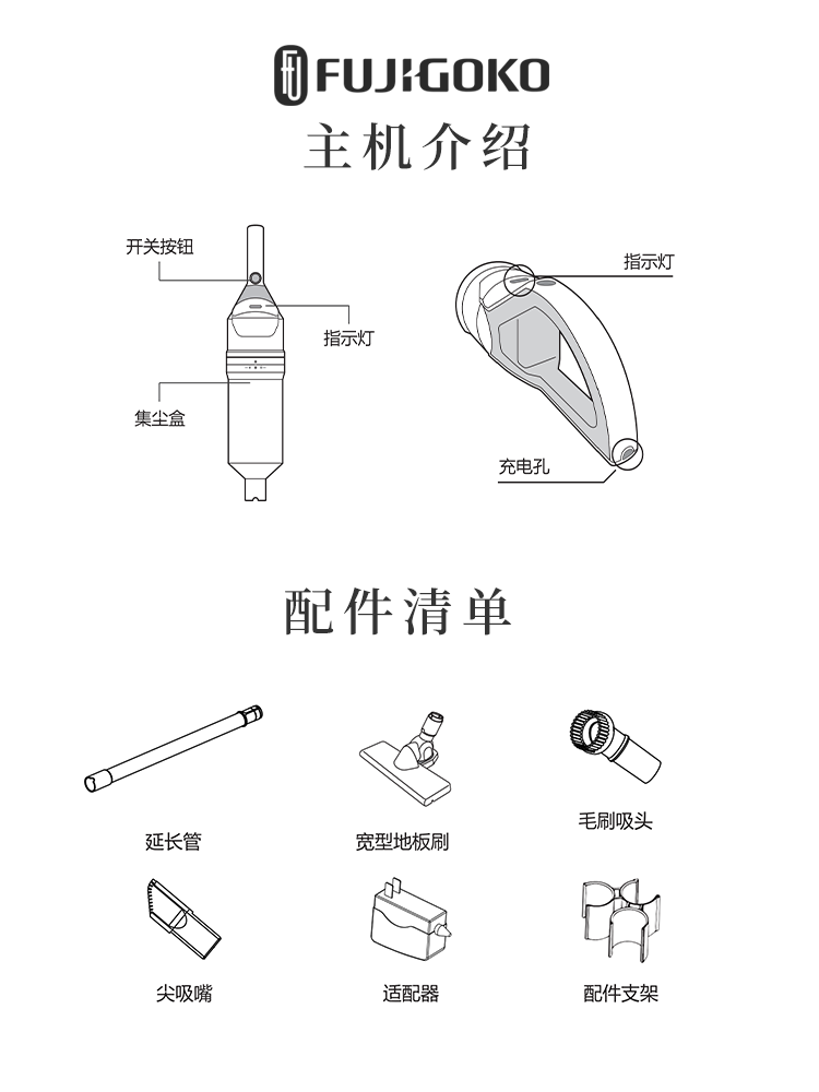 FUJIGOKO轻盈机身吸尘器