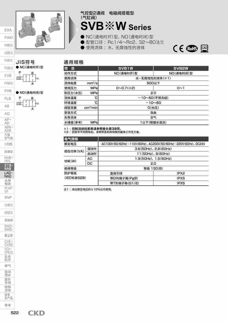 CKD阀SVB1W-8A-B2GS-AC200V现货报价资料及其特点: