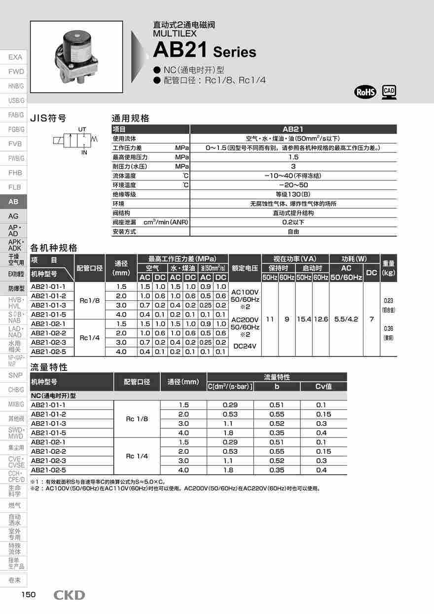 CKD电磁阀AG41-02-1-03AAB-AC220V产品报价及其特点:
