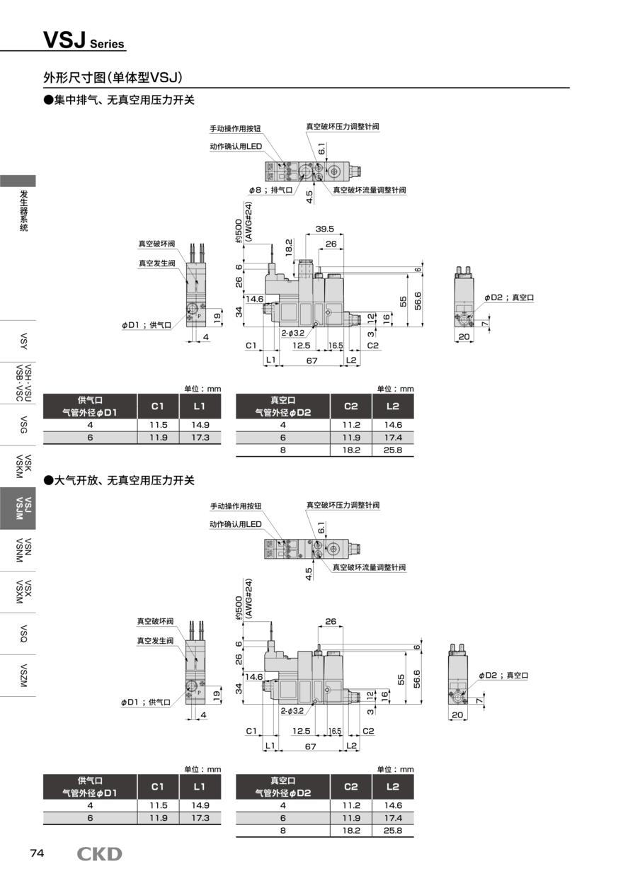 VSJ 系列 SELVACS 顶出系统兼容型 (VSJ-E10D ~) VSJ-E10D-86S-3-W