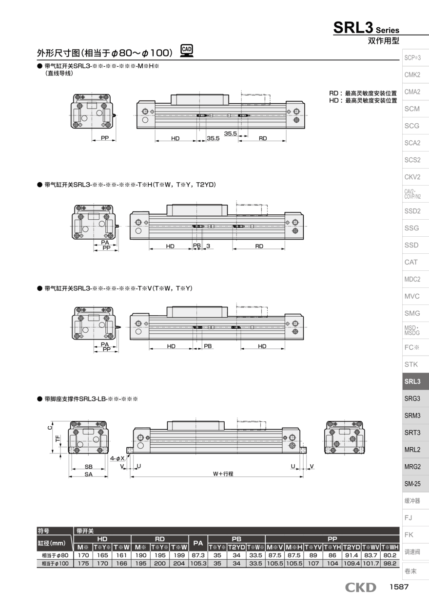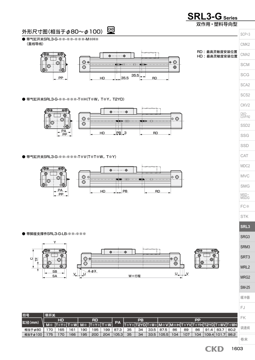 拉杆气缸SRL3-32-L配置方案及其特点:更多有关SRL3同系列产品的选型型号如下:
