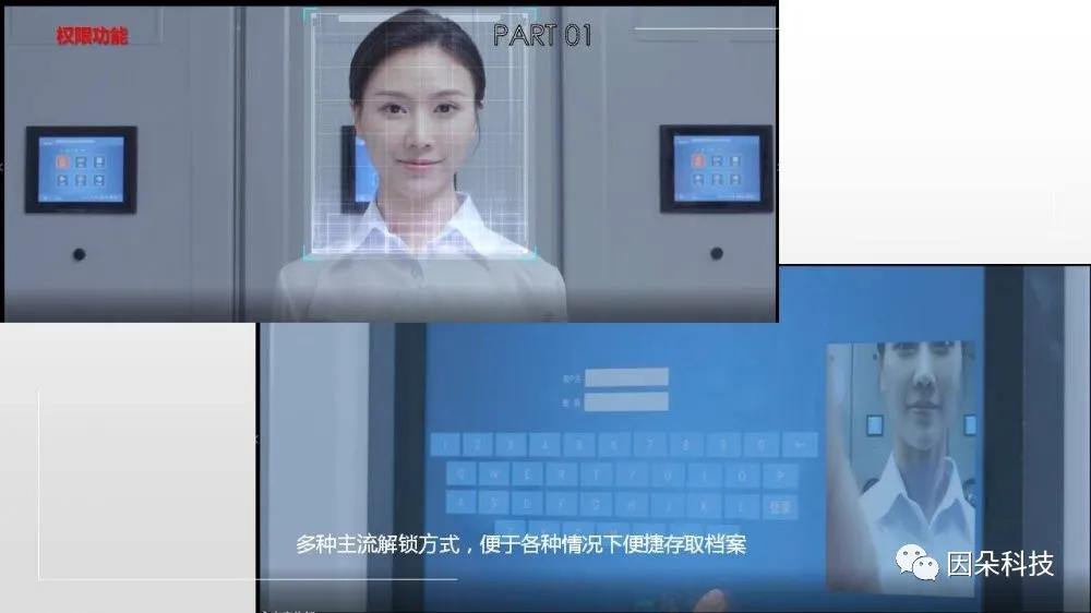 此功能档案工作人员可以语音开启/关闭密集架,遇到双手不得空闲的时候,配合人脸识别解锁功能*为方便。