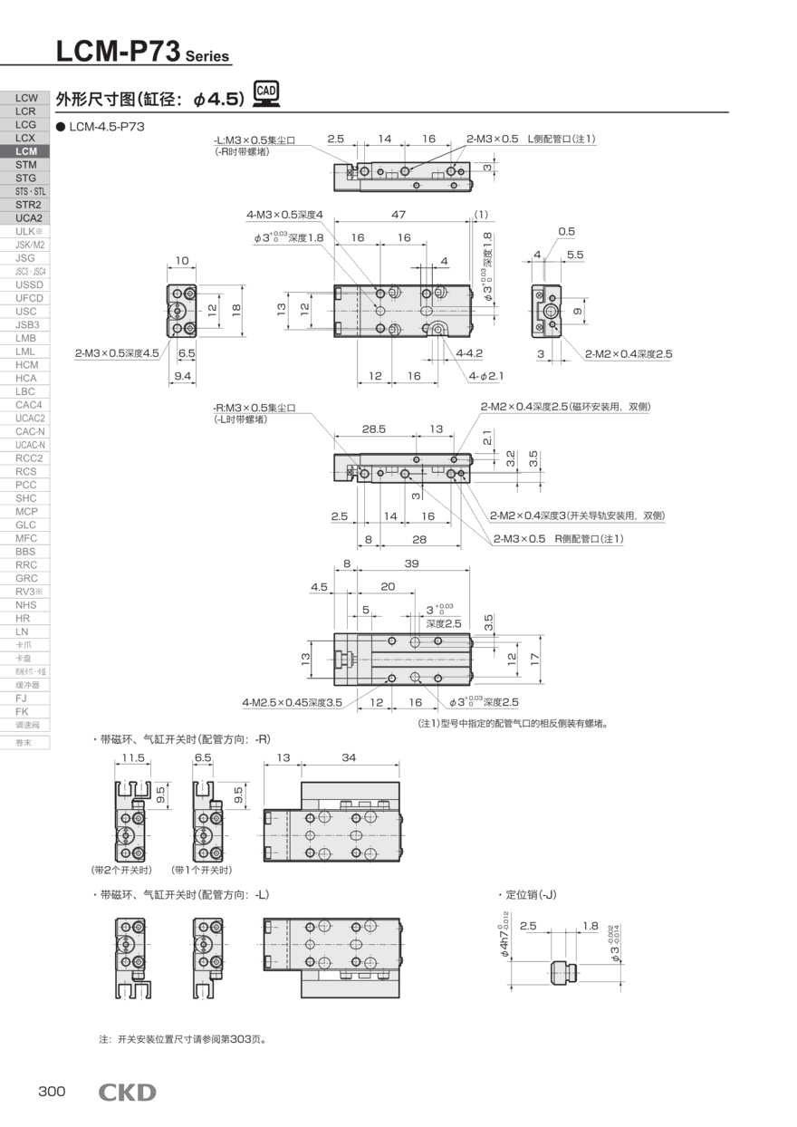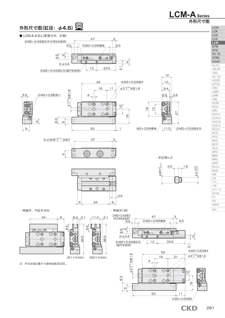 LCMーA 双作用?侧面安装型 Φ4.5, Φ6, Φ8 5, 10, 15, 20, 30