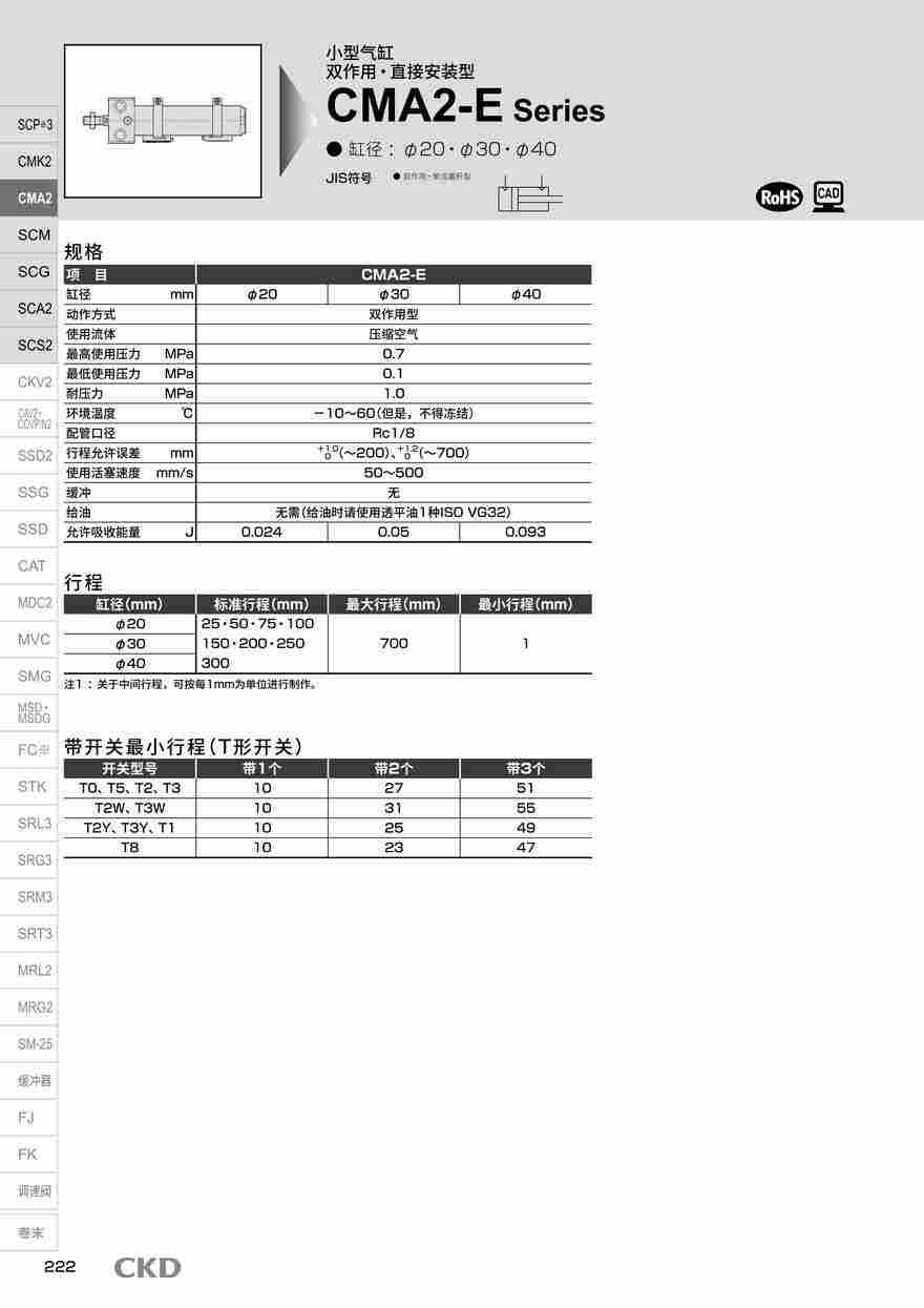 有关日本CKDCMA2-D-FA-30-50气缸的更多参数参考: