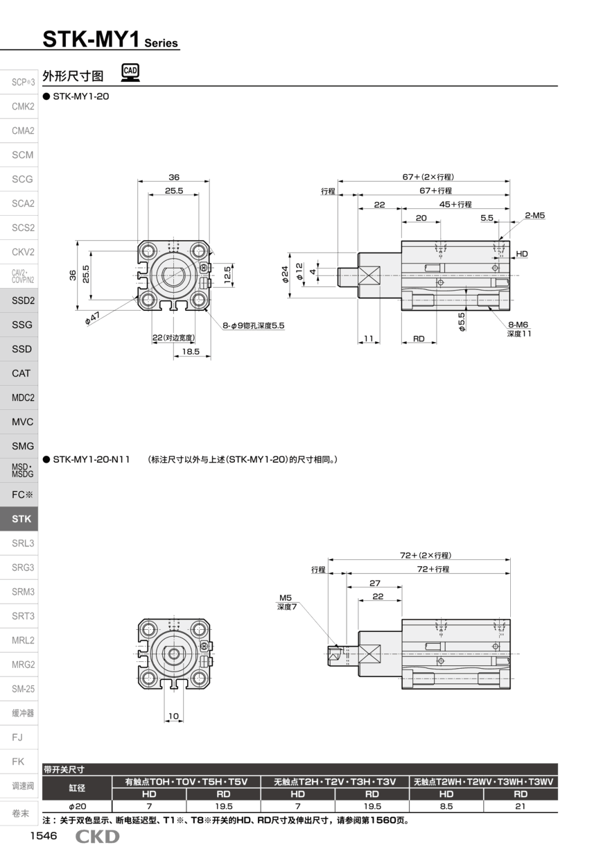 STK‐M 双作用·杆端倒角型 Φ20, Φ32, Φ40, Φ50 10, 15, 20, 25, 30