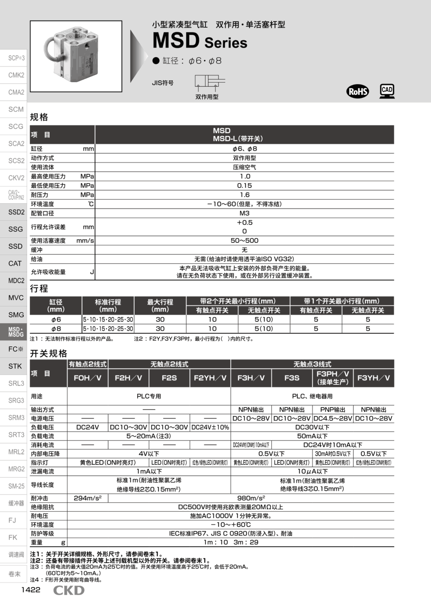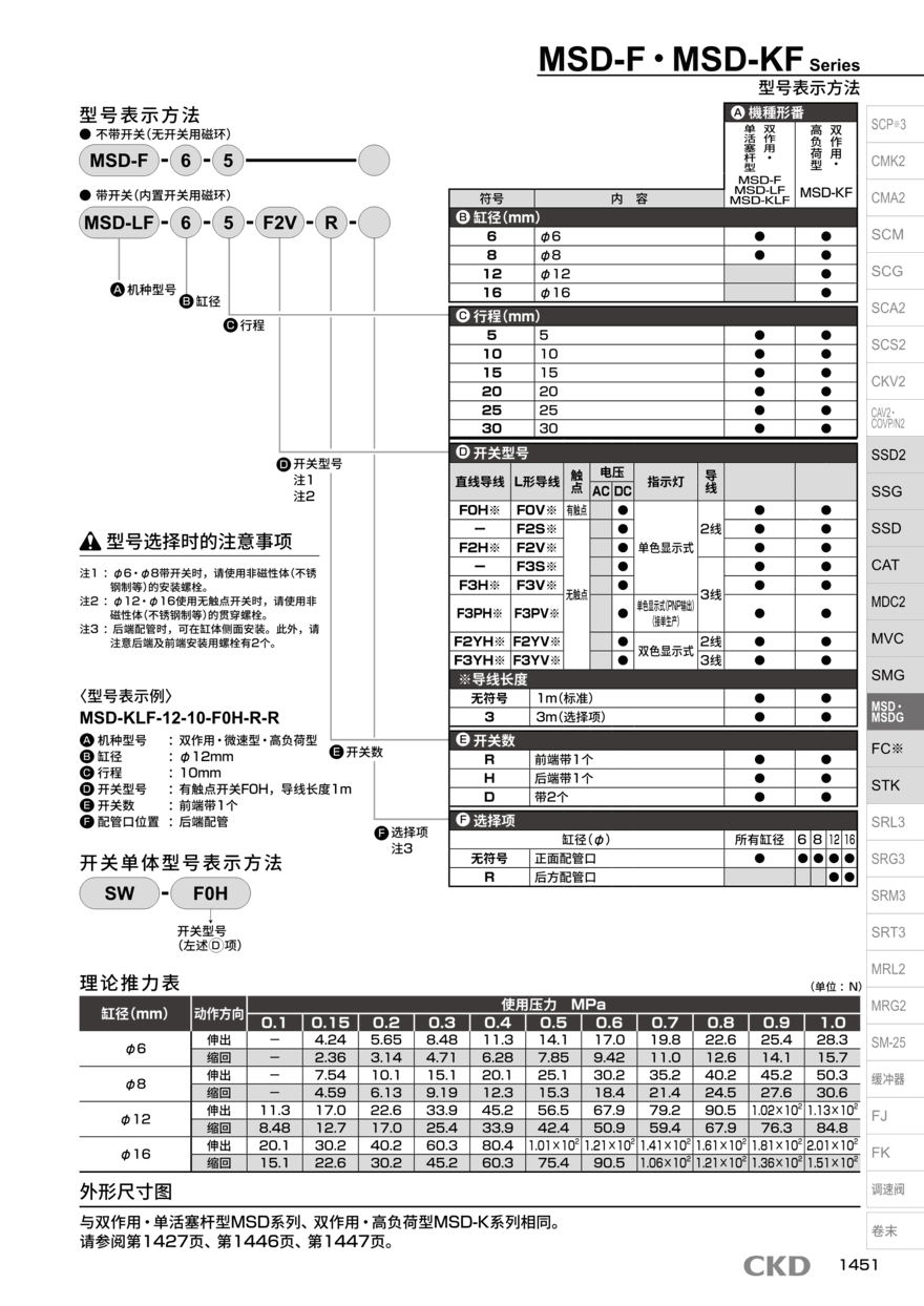 MSD-K 双作用?高负荷型 Φ6, Φ8, Φ12, Φ16 5, 10, 15, 20, 25, 30