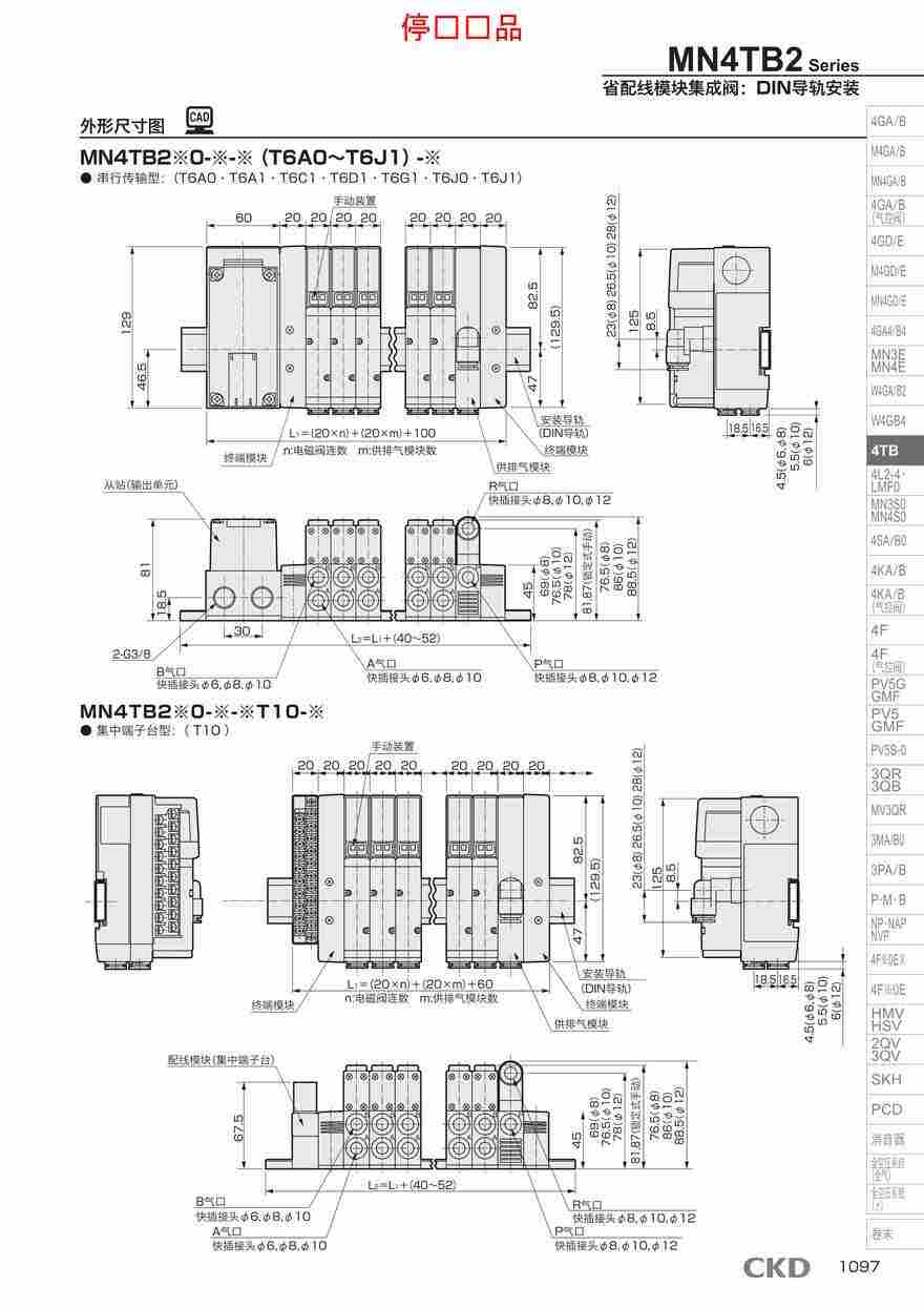 MN4TB1 省配线模块集成阀 DIN导轨安装 快插接头Φ4, Φ6, Φ8, Φ10, Φ12 2018年06月29日
