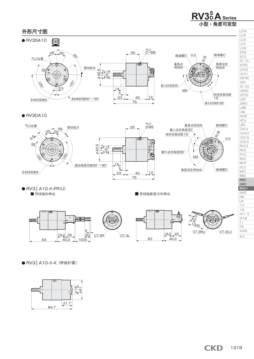CKD自创立以来,作为自动化技术先锋,时刻掌握时代需求,开发研究出各种商品。现在的商品阵容已多达数十万种,活跃于广泛的产业领域。CKD正利用自身的综合技术实力,与客户一起着手于创*商品制造。活用广泛的技术和先端技术,广泛的技术领域以及丰富的商品系列阵容。图下是CKD产品RV3S30-K的选型资料和配置方式: