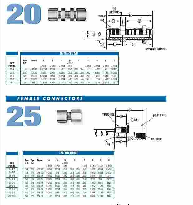 BULKHEAD UNIONS,25 - FEMALE CONNECTORS、40 - MALE ELBOWS、45 - FEMALE