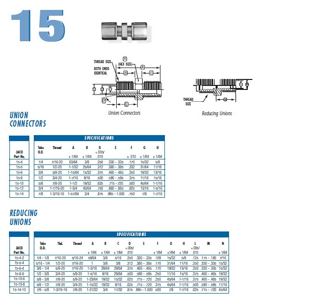 10 MALE CONNECTORS、15 - UNION & REDUCING UNION CONNECTORS,20 -