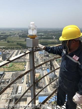 5.高度过150米的烟囱顶层应采用高光强闪光航标灯,其间距控制在75~105米范围内,在高光强闪光航标灯分层之间设置低.中光强航标灯。