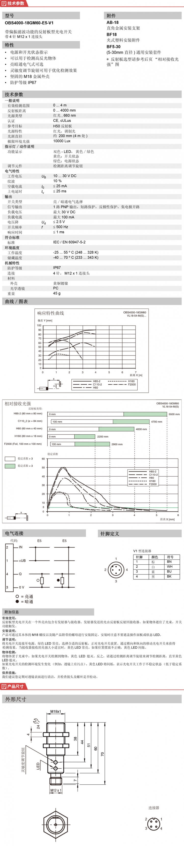 | 信号输出 | 1 路 PNP 输出,短路保护,反极性保护,集电极开路 | |