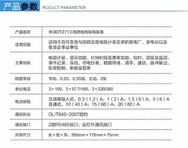 江苏林洋DTZ71三相四线智能电能表采用高性能计量芯片,能实现小电流计量精度高,温度、频率变差小的优势,具有性能稳定、功能丰富、抗干扰能力强的特征,在操作便捷、自检纠错、数据安全及用电异常分析等方面精心设计,支持交直流自适应辅助电源供电。其采用全密封的结构及外壳,可以满足严酷的高低温交变湿热环境应用。电池盒与编程按键可以分别进行铅封,便于供电部门的管理。