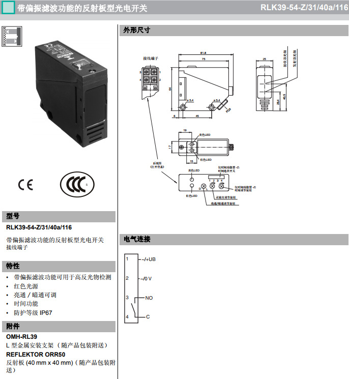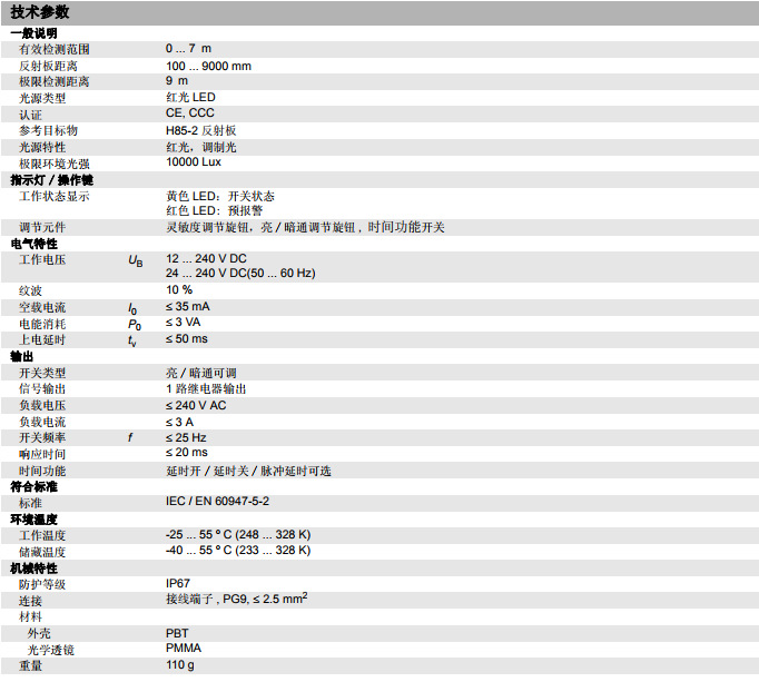 | 环境光限制 | IEC / EN 60947-5-2 , 10000 Lux | |