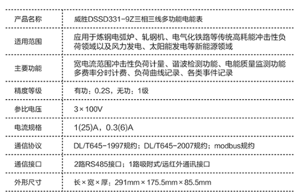 长沙威胜DSSD331-9Z三相电表产品介绍: