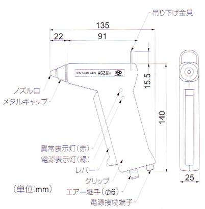 AGZII枪型除电器内置电晕放电生成离子的除电电极.它利用离子空秘来中和带电体的电荷,同时具有吹掉带电体上尘埃的功能.AGZII小型轻量,易于握在手中,内置的小型压电变压器可以将输入的直流电变电为高频低压交流电.与以往的设备不同,它不需要高压电缆,操作非常方便。