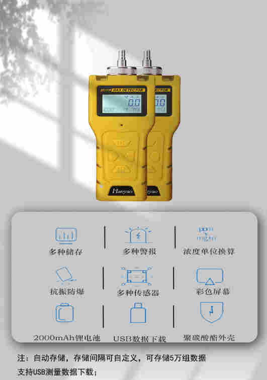 产品特点:◆ 高性能智能化气体传感器,使用寿命长达2-3年以上;◆ 主动泵吸式或扩散式可选,响应时间短、采用低功耗微处理器,检测误差小分辨率高;◆ 智能的温湿度和零点补偿算法,2级以上的目标点全软件自动校准功能,确保测量结果的准确性;开机自动检测各个传感器以及元器件的工作状态;◆ 高清晰LCD显示屏,大而清晰的背景光可在任何灯光条件下显示测量信息, 4键导航的友好用户操作界面,尽显设计的人性化、国际化。hanyaodianzi