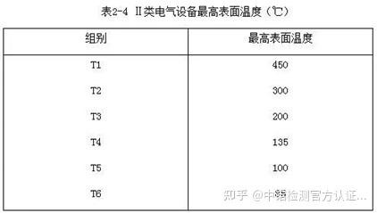 2、Ⅱ类电气设备,主要在非矿井上的各类爆炸性气体场所。由于爆炸危险场所具有各种不同性质的爆炸性混合物,这些爆炸混合物都有不同的引燃温度。因此,就有各种不同的组别,所以它们的*表面温度不得过表2-4的规定。