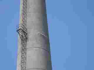 钢筋混凝土烟囱筒身高度通常为60-250m,底部直径7-16m,筒壁坡常采用2%,筒壁随分段高度自下至上逐渐减薄,但同一分段内的厚度应相同,分段高度一般不大于15m。筒壁混凝土内的纵向钢筋*小直径为10mm,间距为300-500mm,环向钢筋*小直径为8mm,*间距为250mm, 且不得大于筒壁厚度。筒身顶部4-5m为筒首,为防止排出气体对钢筋混凝土的侵蚀,该段截面要加厚。钢筋混凝土烟囱检测主要包括三个方面: