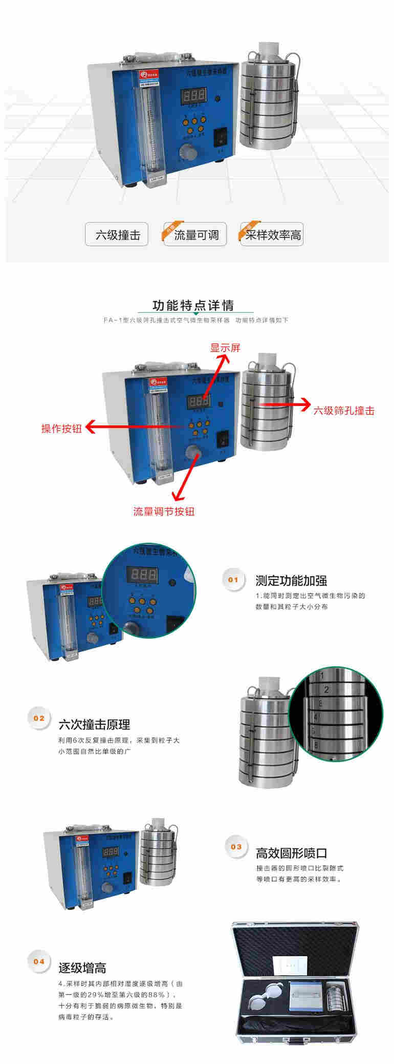 LB-2111撞击式空气气溶胶采样器是用标准提及的方法收集悬浮在空气中的活微生物粒子,通过专门的培养基,在适宜的生长条件下繁殖到可见的菌落数。可广泛用于疾病预防控制、环境保护、制药、发酵工业、食品工业、生物洁净等环境的空气微生物数量及其大小分布的采样监测,以及有关科研、教学部门作空气微生物的采样研究,为评价环境空气微生物污染的危害及其治理措施提供科学依据。