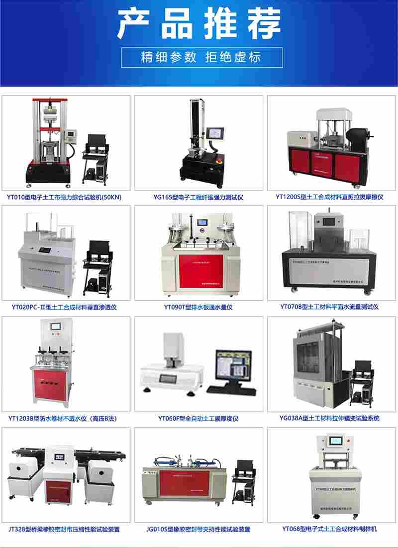 JC/T2112塑料防护排水板通水量仪用于在不同的法向压力和标准的水力梯度下,土工布及其有关产品的平面内水流量的测定,以及配备相应夹具能够满足常规塑料防护排水板纵向通水量的测试。