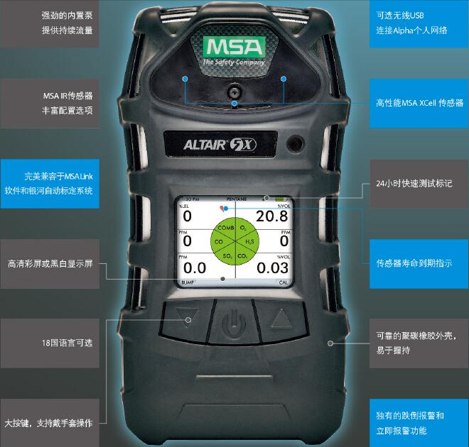 美国梅思安MSA天鹰 5X(Altair 5X)多种气体检测仪产品特点: