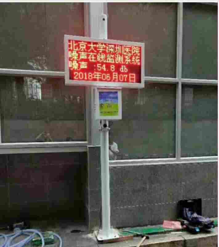 LED 现场显示屏:主要由 LED 显示屏、控制器和通讯模块组成。实时显示本地噪声数据,同时接收监测中心的信息,并远程实时发布信息或等