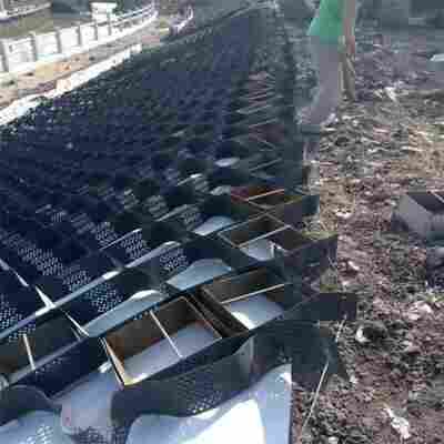 土工格室是用土工织物与土工膜复合而成的不透水材料,它主要用于防渗,复合土工膜分为一布一膜和两布一膜、宽幅4-6m,重量为200-1500g/m2,抗拉、抗撕裂、顶破等物理力学性能指标高,能满足水利、市政、建筑、交通、地铁、隧道等土木工程需要。由于其选用高分子材料且生产工艺中添加了防老化剂,故可在非常规温度环境中使用待植物生长茂盛时,能抵抗冲刷的径流流速达6m/s,为一般草皮的2倍多,保护土壤,减少了水土流失。。