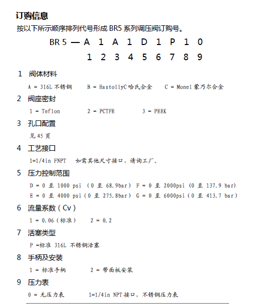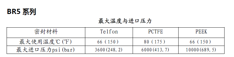 BR5 系列减压阀是为了满足出口压力达到6000psi(413.7bar)和抗腐蚀要求的需要,316L 不锈钢的本体提供了抗腐蚀性并且保证操作的安全性。为了延长使用寿命,该阀门配有20um 过滤器,避免入口的杂质损坏阀座。可用于取样分析、研发系统、中试装置、近海油田等。