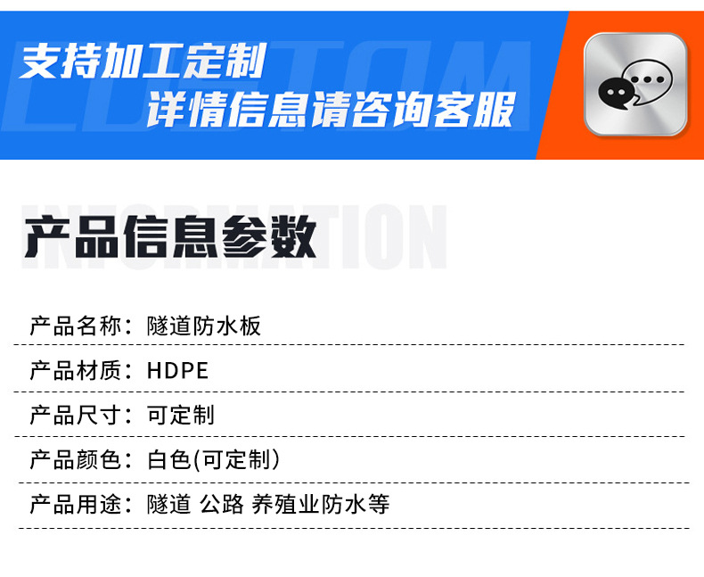 隧道防水板是以高分子聚合物为根本原料制成的一种防渗材料,既能够避免液体渗漏,也能够预防气体挥发。EVA隧道防水板在建筑、交通、地铁、隧道、工程中普遍运用。防水板主要功用是避免液体的渗漏和气体的挥发, 防水板在岩石工程中的作用主要为防渗和隔绝,但是同时也起到增强和防护的作用。吊挂式隧道防水板是一种*隧道防水材料,实现无穿通钉施工悬吊式排挂完成,可大大简化传统防水材料在隧道中的施工难度,铺设质量和铺设效率,缩短工期,大幅度降低工程的综合成本,有着较高的市场竞争优势。隧道防水板的价格是根据原料价格来调整的,一般在8500到9000元左右每吨(价格仅供参考)宽幅和长度根据用户需求来定制。配套使用有土工布,复合土工布,复合膜等等。防水板的用途广泛,用于铁路隧道.公路隧道.涵洞.地铁.工矿及地下工程等等。