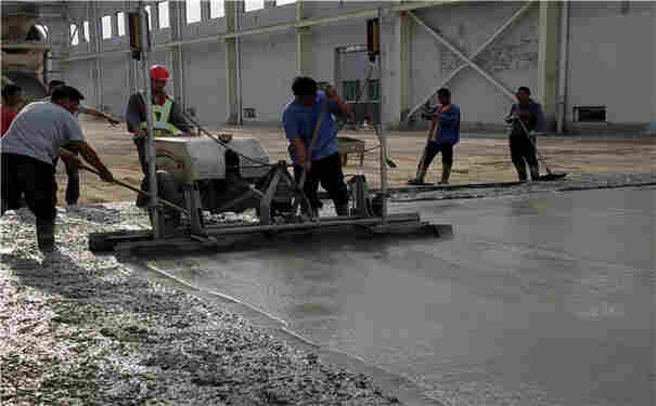 在大面积地坪施工中,传统工艺的人工施工,班组人数由15名左右组成,单班完成工作量在700㎡左右。