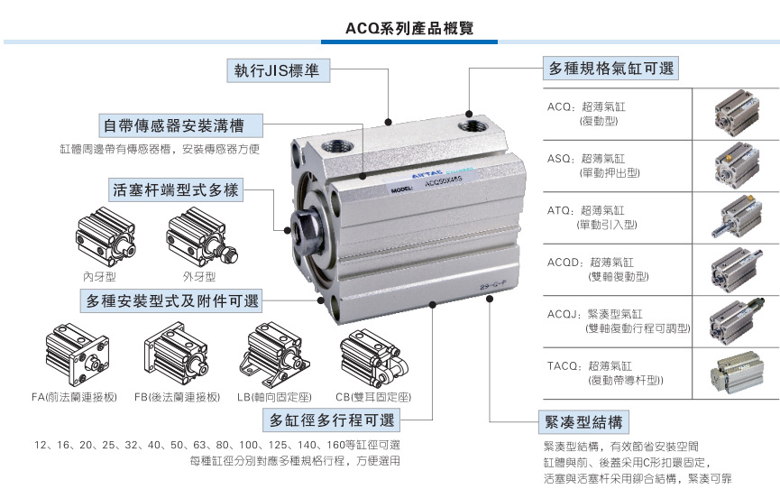 ACQ12-SB 薄型气缸ACQ100X10X15X20X25X30X40X45X50X60
