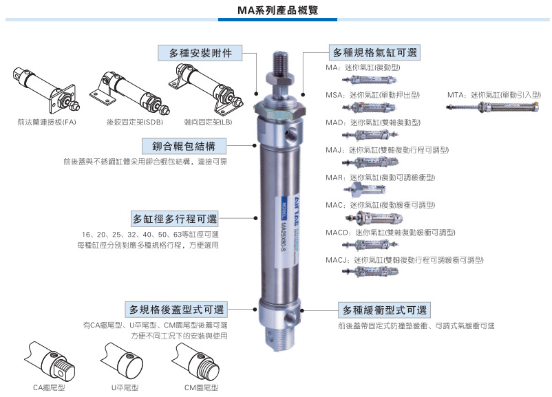 迷你气缸MA25X25X50X75X100X125X150X200X250X300X350SCA
