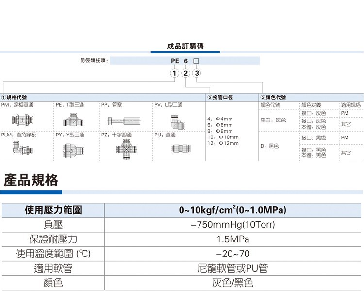 快速接头直通二通气管变径/等径APU/PU/PG-12-10-8-6-4