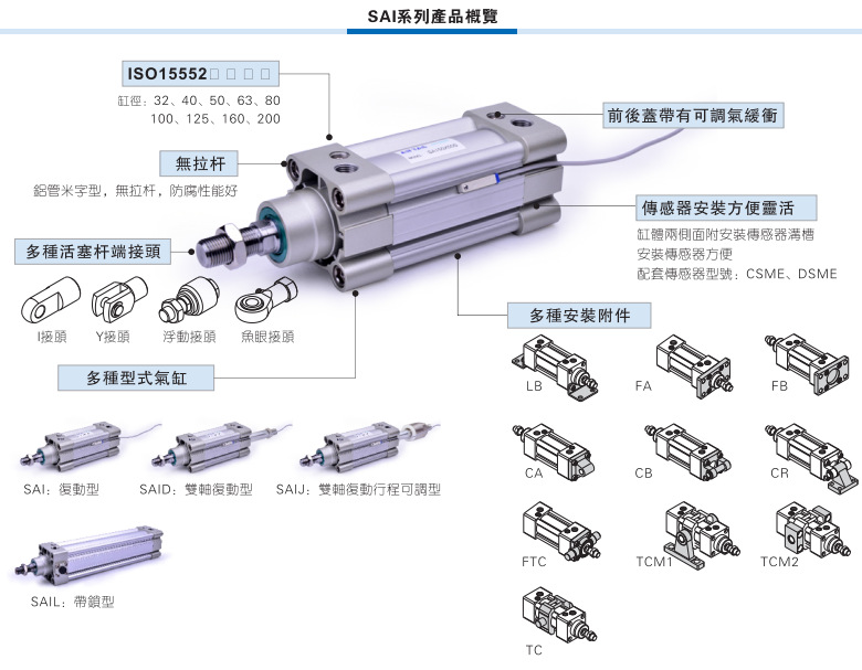 标准气缸SAI32 SAI32X25X50X75X100X125X150X175X200X30S