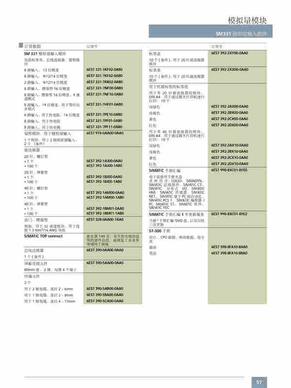 56 6ES7 331-1KF01-0AB0 模拟量输入模块(8路, 13位精度)