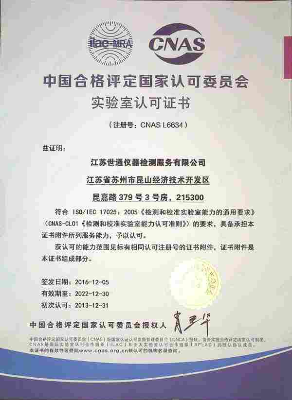 世通检测校准公司是一家致力于仪器校准,量具校准,,仪器外校,测量设备校准,计量器具校准,检测设备校准,测试仪器校准,计量设备校准,检测工具校准,仪器计量,仪器检测,计量检测,内校员培训的*大型校准机构,是经*合格评定*认可委员会(CNAS)认可,认可代号CNAS:L3170。通过ISO17025计量准则要求,获得与CNAS签署互认多边协议*和地区实验室认可机构承认,所出具的校准证书和检测报告得到实验室认可,合作组织多边互认协议(ILAC—MRA)其它成员的承认和认可。