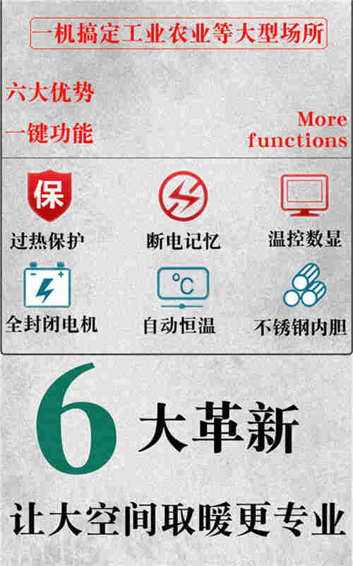 6.燃油热风机恒温准确,比如设定到30度,机器运行温度上升到31度会停止工作,这个时候就不再耗油而温度下降到30度暖风机会再次启动,反复加温,非常节能环保。7.由于永备热风机加温很迅速,机器不必要一直燃烧。室内温度达到设定温度时机器会自动停机的。机器开机后运行时间长短与房间的保温情况和加温面积等因素有关系。面积越大,加温时间越长。保温越好,加温时间越短。8.燃油热风机具有多重安全保护装置,如:过热保护,熄火保护,过热电流保护等。同时,柴油本身不易燃,机器工作电压电流都不大,没有危险,以请放心使用。9.燃油热风机连接温控器后可以自动控温。比如温控器设定温度在25摄氏度,房间温度加温到25摄氏度(误差2度)后,热风机会自动停机,停止加温。当房间温度低于25摄氏度时(误差2度),热风机自动启动加温,如此反复。