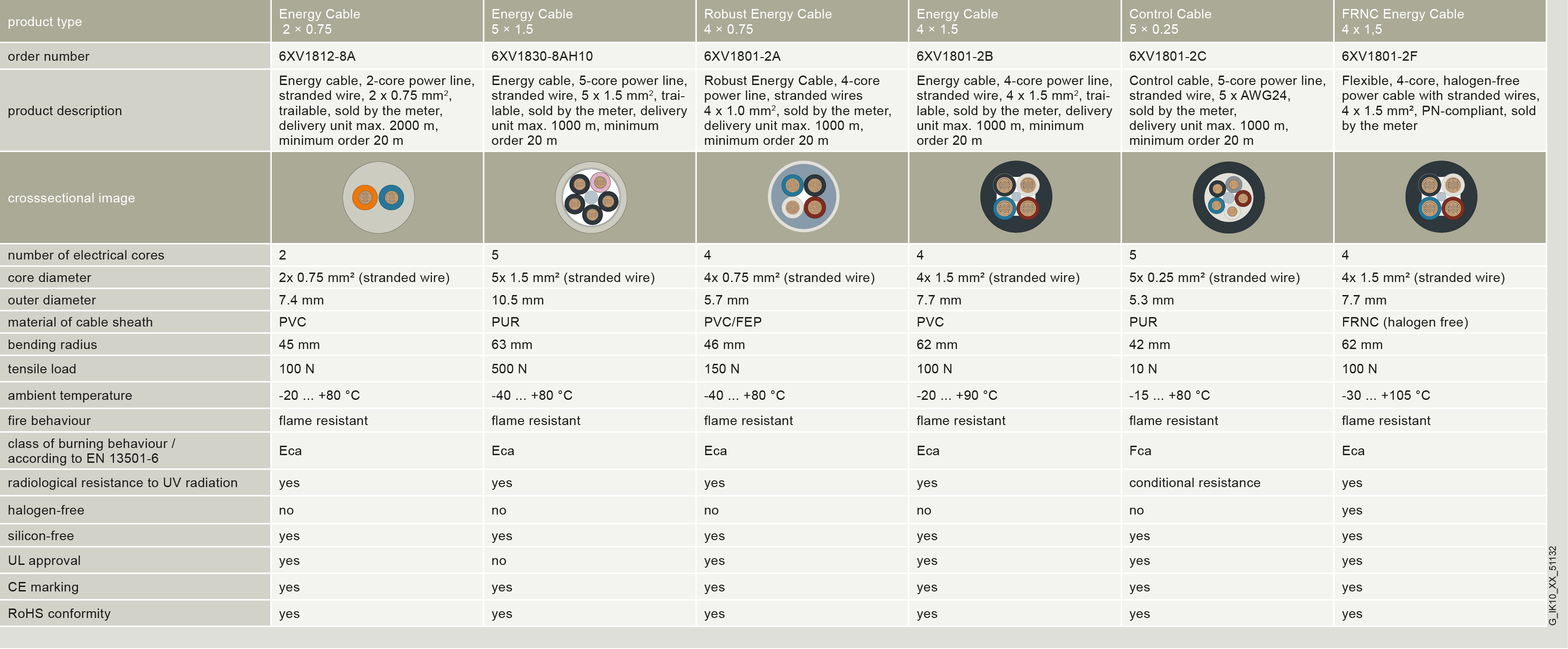 柔性控制电缆(5 芯),按米销售,未装配 |