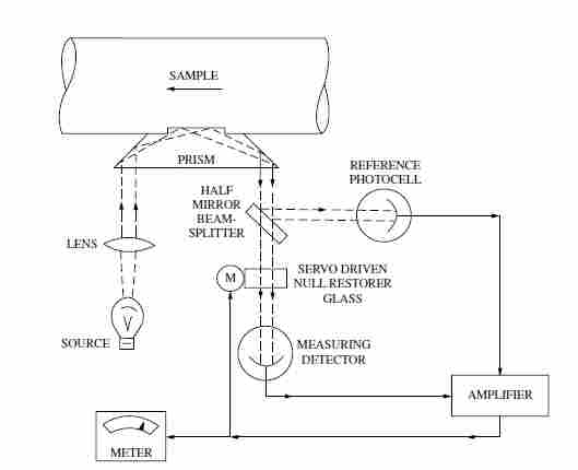 MPR E-Scan 通过判断此明暗场界限,判断被测介质的临界角,再根据折光指数已知且恒定的棱镜(蓝宝石)折光指数和计算公式,计算出被测介质的折光指数,并进一步按照被测介质和折光指数浓度良好的线性关系转换成相应质量浓度显示和输出。