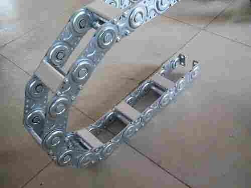 链,即铝型材支撑板整块式,在支撑板上根据用户使用要求打矩形孔或圆形孔。该型TL钢制拖链强度比较大,适用于承载较重负荷;(2)铝型材支撑板II型TL钢制拖链,即支撑板为上下分开式穿线拖链适用于管线接头直径大于线体大直径、且需要经常拆装的场合;(3)支撑板III型TL钢制拖链,即框架式钢制穿线拖链,内有塑料或铝型材制隔离片。适用于管缆规格品种较多的场合。TL钢制拖链是一种重型拖链,承载量高,架空长度大,适用于大中型机械,在使用中不会加大拖链的扭曲和变型,主体是由链扳支撑扳轴销等部件组成,使电缆或橡胶管与拖链之间不产生相对运动,不产生扭曲变形,链扳经镀铬处理外形效果新颖结构合理,灵巧强度高,钢性好不变形,安装方便,使用可靠,易拆装—