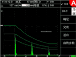 | DAC曲线 (见图A) | 距离波幅曲线,*多可记录99个点;每个点可编辑、删除,可插入点;三条附加的曲线(如评定线、定量线、判废线);可选择折线连接各点、平滑的曲线连接各点;根据dB、范围等的改变而移动;可创建、编辑、存储、删除、调用 | |