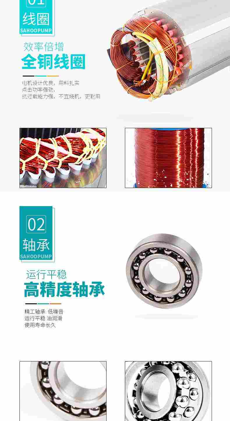 6、配有轴向力型和耐温型不锈钢潜水电机。